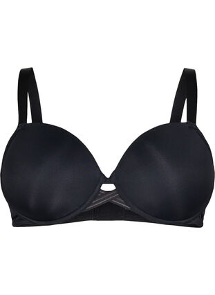 Soutien-gorge à armatures avec bonnets moulés à surface lisse. Le soutien-gorge a un joli détail croisé entre les bonnets et de larges bretelles réglables, assurant un bon maintien.