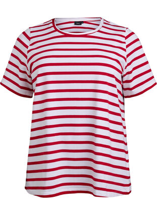 T-Shirt in klassischem Streifendesign mit kurzen Ärmeln und Rundhalsausschnitt. Das T-Shirt ist aus einer angenehmen Baumwollqualität mit 95 % Bio-Baumwolle.