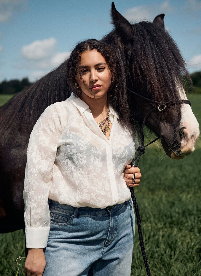 - Hemdbluse mit Ton-in-Ton-Blumenmuster
