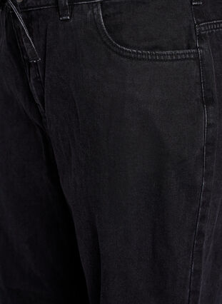 Jeans aus 100% Baumwolle mit hoher Taille und einem schmalen Bindegürtel. Diese Jeans hat ein gerades Bein und wird mit einem Reißverschluss und einem Knopf geschlossen.