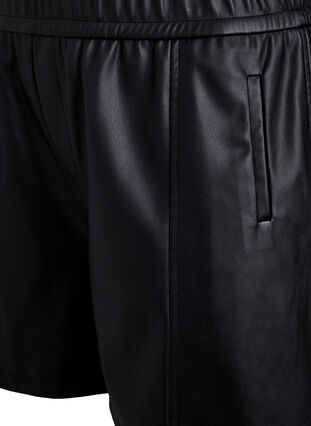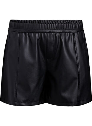 Shorts aus Kunstleder mit einer lockeren und bequemen Passform. Die Shorts hat eine hohe Taille mit elastischem Bund, Seitentaschen und einen nicht funktionalen Reißverschluss auf der Vorderseite.