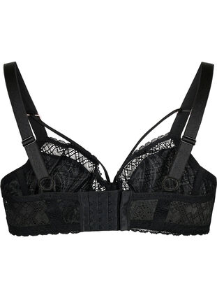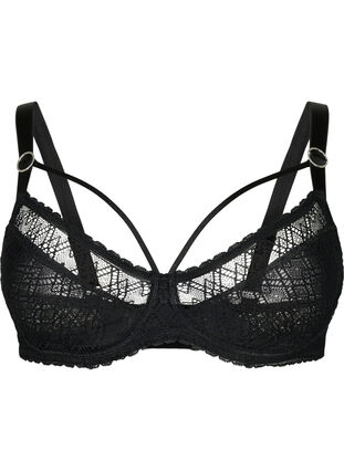 Balconette-BH aus Spitze mit String-Detail über der Brust. Er verfügt über Bügel sowie verstellbare Schulterträger und ist nicht gepolstert.