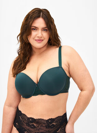 Schöner und schlichter BH mit Bügeln und geformten Körbchen. Der BH hat breite, verstellbare Träger und ist sehr bequem. Der BH hat Netz-Seiten mit einem weichen Satin-Gummiband und einem zarten Spitzendetail sowie eine Schleife zwischen den Körbchen für einen femininen Touch.