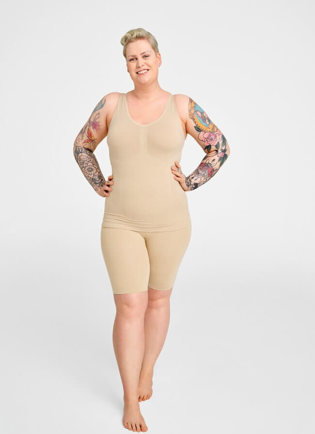 Eine weitere wirksame und bequeme Lösung ist Shapewear, die es ebenfalls in verschiedenen Formen gibt. Sie leistet fast dasselbe wie eine Innenhose, strafft und formt aber zusätzlich den Körper. Das Tragen von Shapewear-Shorts oder eines Jumpsuits verhindert Scheuerstellen zwischen den Beinen und machen sich keine Sorgen.