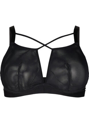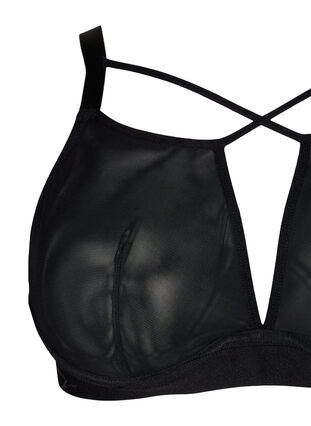 Schöner BH in dehnbaren Mesh-Material mit elastischem Bänder-Detail über dem Busen. Er hat verstellbare Träger, einen elastischen Rand unter der Brust und einen Bügel, der an den Seiten und unter der Brust für Halt sorgt. Er schließt in der Mitte ab und geht nicht wie ein klassischer Bügel-BH zwischen den Brüsten hoch.